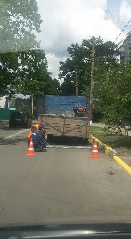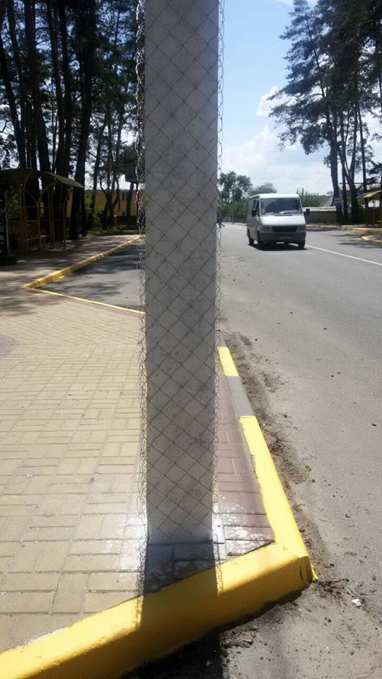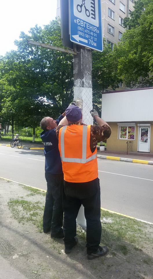 Обгортання стовпiв сiткою по вулиці Северинiвська.