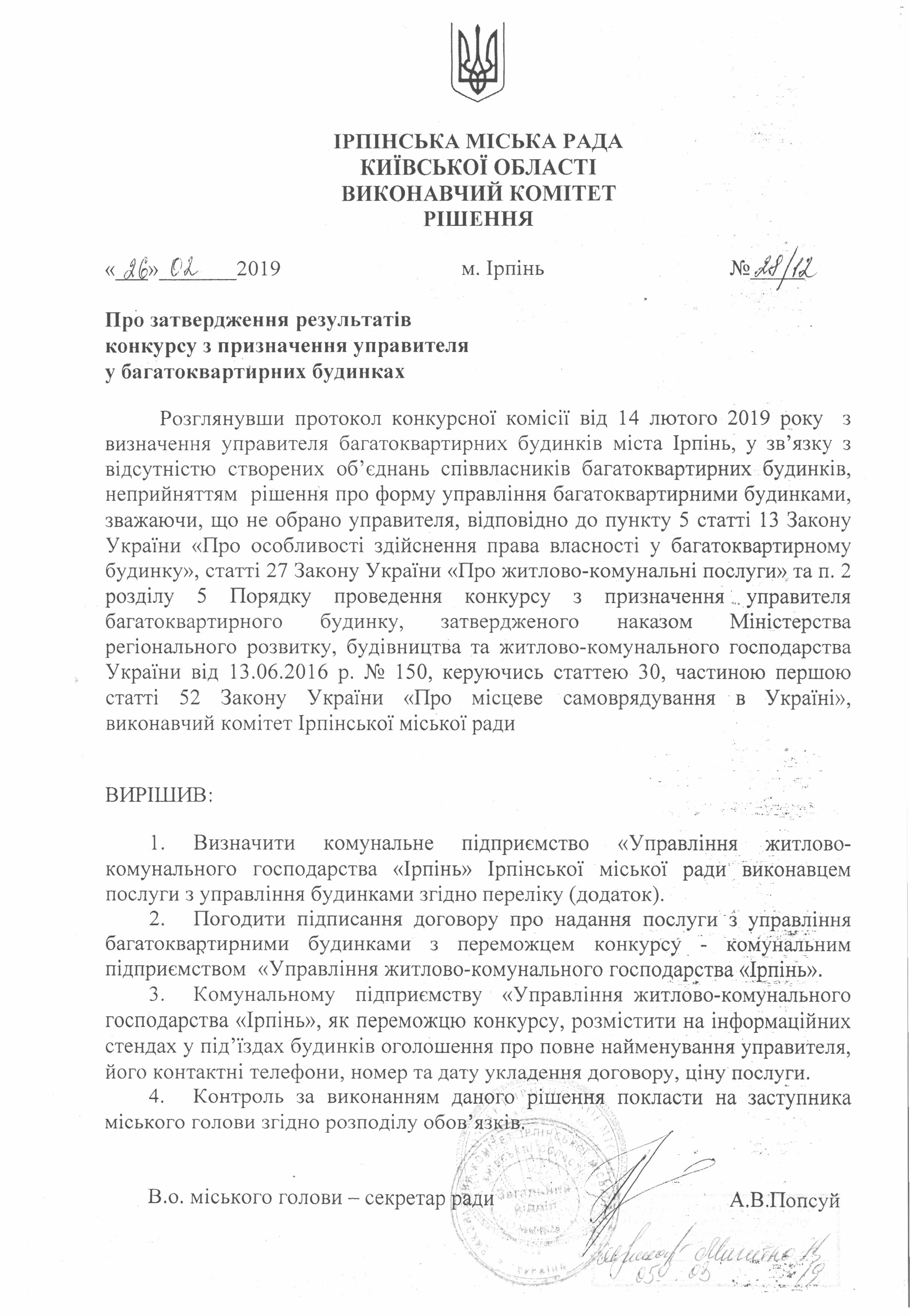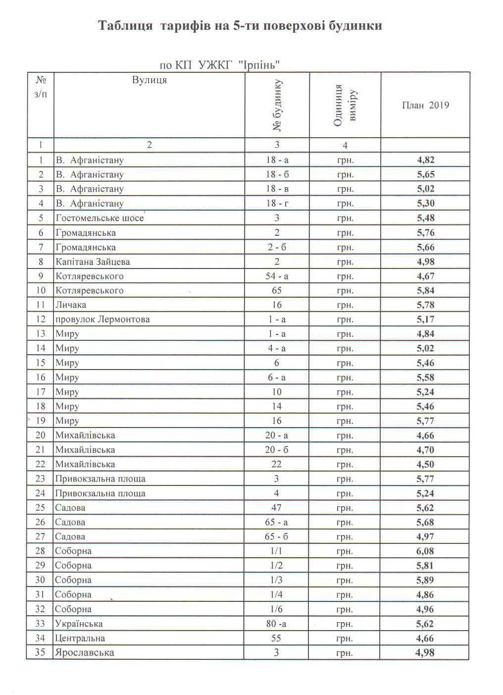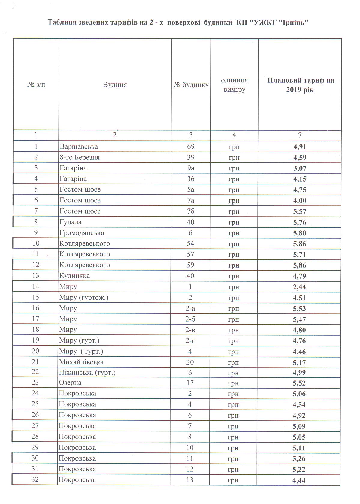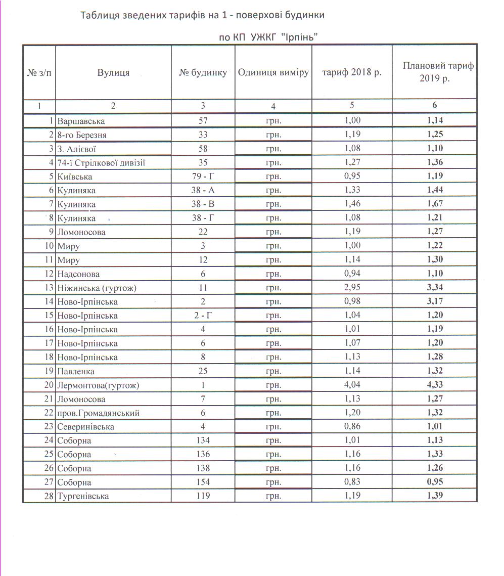 23.06.2018 Тарифи на послуги з утримання будинків і споруд та прибудинкових територій затверджені рішенням виконавчого комітету Ірпінської міської ради №133/2 від 19.06.2018 року.
