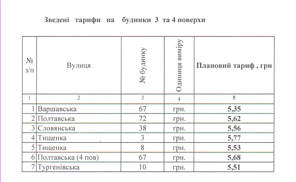Розраховані тарифи згідно з постановою Кабінету Міністрів України від 01.06.2011 року №869 “Порядок формування тарифів на послуги з утримання будинків і споруд та прибудинкових територій” та відповідають змінам, внесеним постановою КМУ від 17.07.2015 року №515 “Про внесення змін до Порядку формування тарифів на послуги з утримання будинків і споруд та прибудинкових територій”.